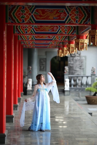 ドレスで限られた動きの中、いかに躍動感ある作品にできるか、ドレスの綺麗な柄の部分をしっかり見せながら姿勢を作る。